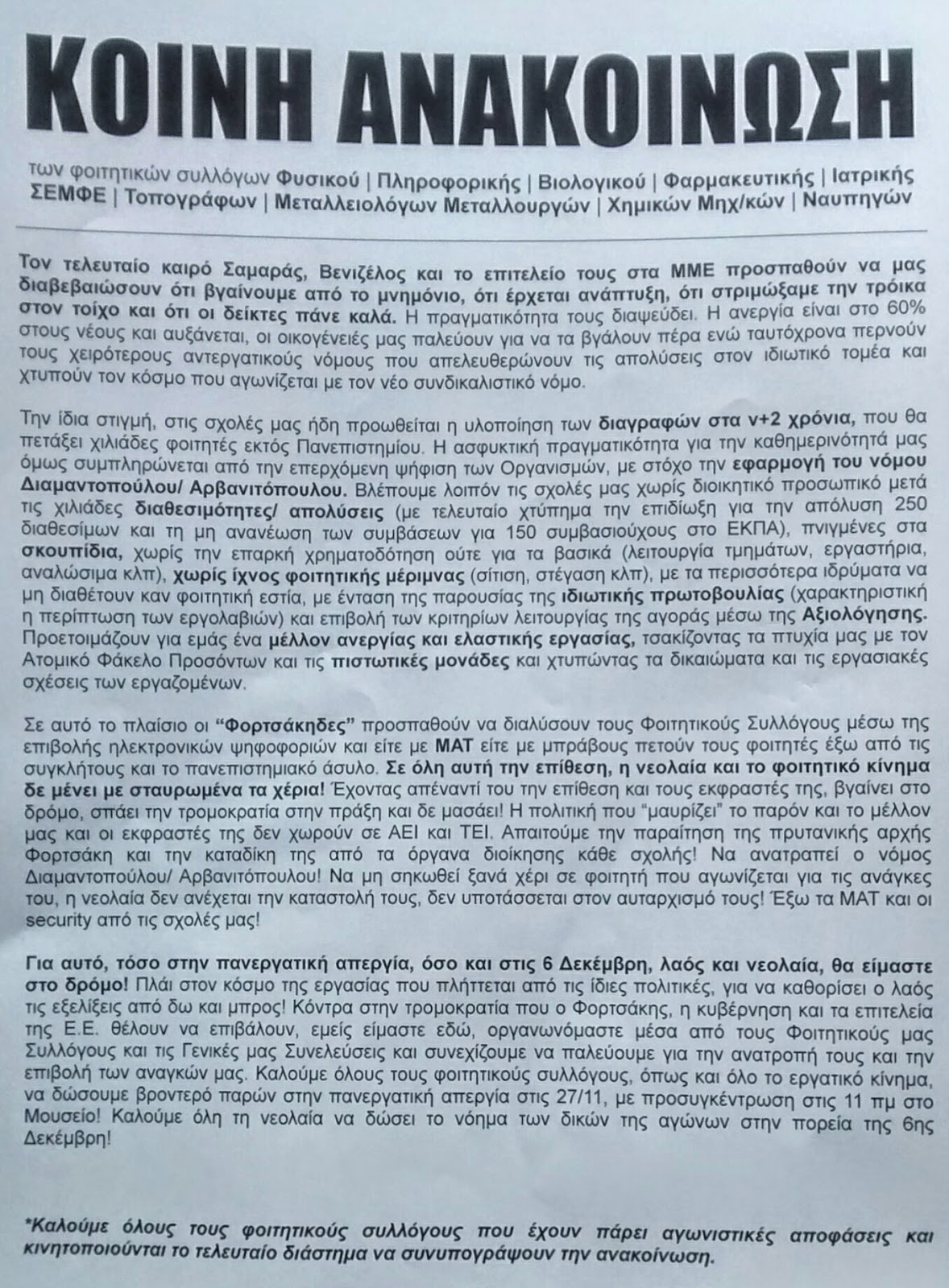 συλλογικών αγώνων και των μαχητικών πρακτικών του φοιτητικού κινήματος.